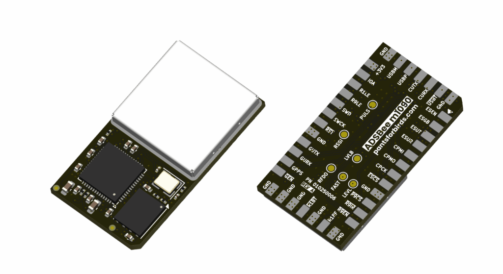 The ADSBee m1090 is our solder-down 1090MHz receiver module for OEM applications. It has everything needed to decode 1090MHz ADS-B (minus one of the gain stages that the 1090U has), and can be coupled with an external TI CC1312 and ESP32 to add dual-band receive and WiFi functionality, respectively.