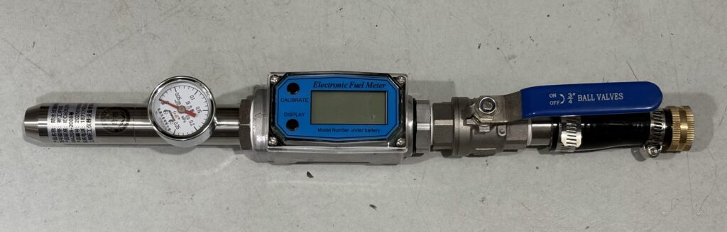 An IPX5 test nozzle, with a hose adapter I added to the end of it using hose clamps so that it can fit onto a standard garden hose fitting.