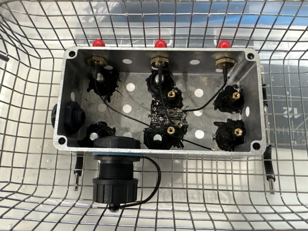 For sensing whether water has entered an enclosure, I found water sensitive stickers to be very helpful. A pattern of water sensitive stickers around key ingress points would usually be enough to show what was entry point was leaking (as long as I didn’t shake the enclosure around too much after completing the test). An infrared camera was also somewhat useful for finding water ingress, since there was a noticeable temperature differential between the enclosure (room temperature) and the water (cold). Interestingly, the biggest issue with using a thermal camera was the reflectivity of the aluminum enclosure itself. On a thermal camera, the aluminum box looks like an infinite mirror cube, which can make it somewhat difficult to pinpoint a leak. For a more sensitive test, specialized colorimetric developer spray can be used to coat the inside of an enclosure with color changing paint (removeable) that turns green when exposed to water.
